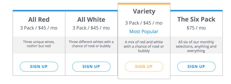 What’s included: Their subscription service includes a choice of 3 reds, 3 whites, or a combo of both for $45 per month, or if you really love wine, they also have a 6 bottle selection for $75. Let’s think about this for a minute. This is a pretty good deal- if you consider the price of the wine, shipping, accessibility to wines that you would otherwise have a hard time finding, and the fact that you never have to leave your home for them.